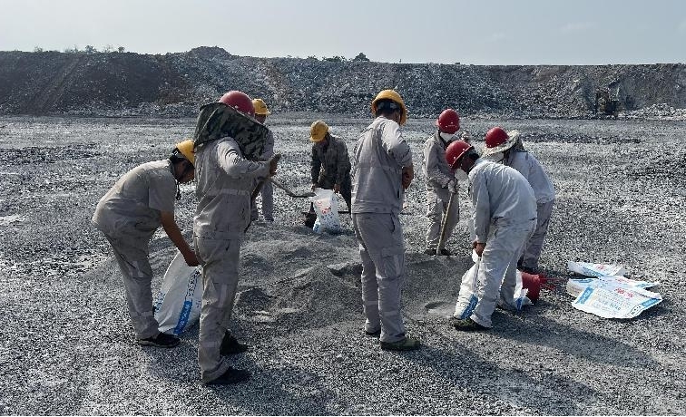 本次演練模擬因突發(fā)臺風(fēng)、暴雨導(dǎo)致我礦山+390截水溝排水不暢,采場積水持續(xù)上漲,即將涌向礦山+375平臺,影響到生產(chǎn)及人員、設(shè)備安全,應(yīng)急救援人員立即奔赴現(xiàn)場,按照總指揮的統(tǒng)一調(diào)度,分工協(xié)作、明確任務(wù),迅速有效的開展搶險活動。取土、裝袋、搬運,用砂袋堆砌一道擋水墻,對上漲洪水進行圍堵,防止洪水繼續(xù)漫延造成損失。同時對救援組成員對傷員進行緊急救援處理。經(jīng)過全體救援人員的奮力搶險,排除了暴雨造成的物與人的險情。演練中各類防洪物資質(zhì)量完好,數(shù)量齊全,能保證在短時間內(nèi)迅速投入到搶險行動中。